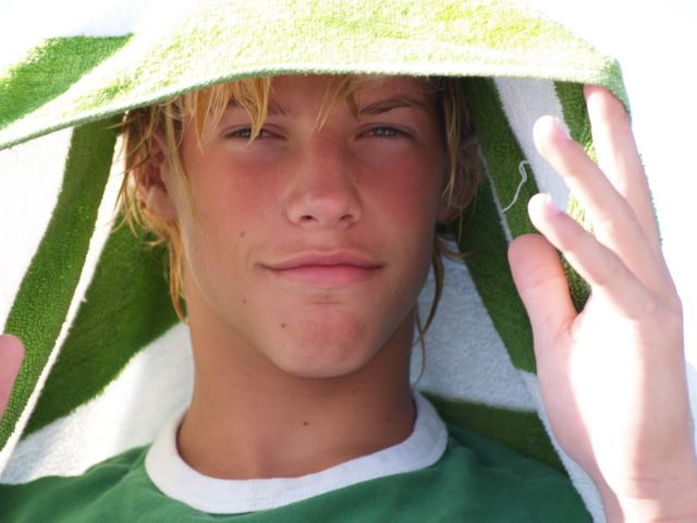 Dillon under a towel